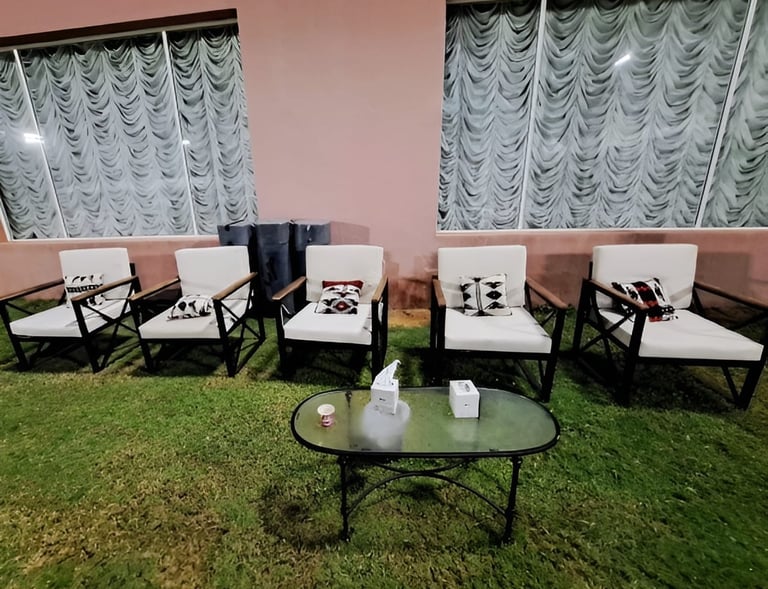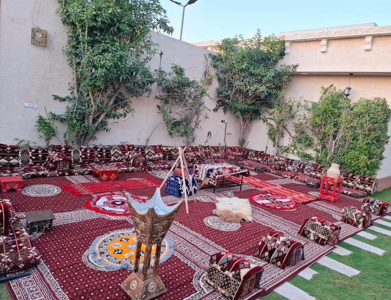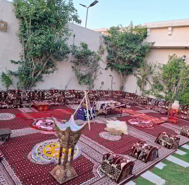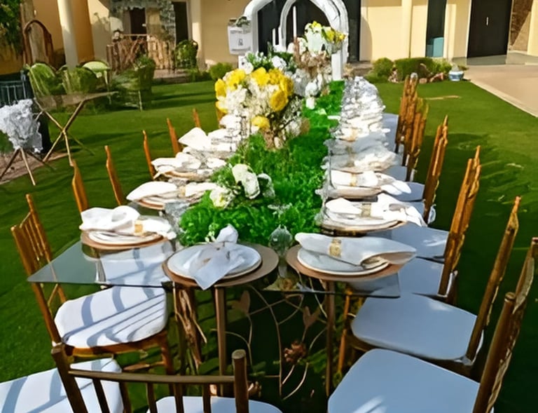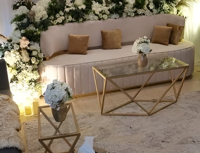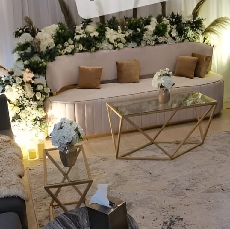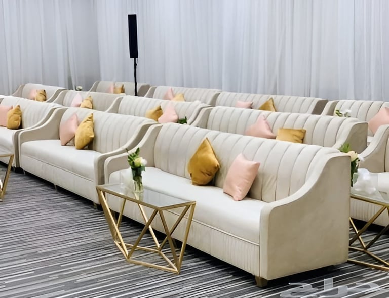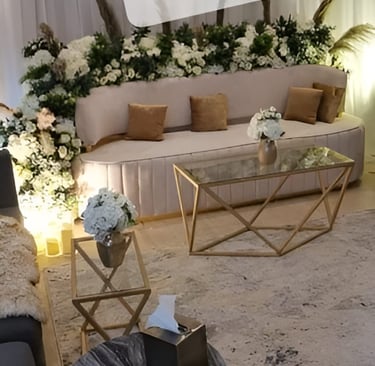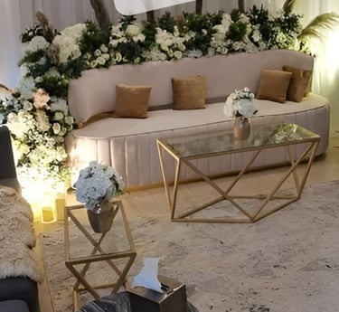 نحن نرتب حفلاتك بأناقة وذوق رفيع، مع ديكورات فخمة وتجهيزات متكاملة تجعل مناسباتك لا تُنسى.